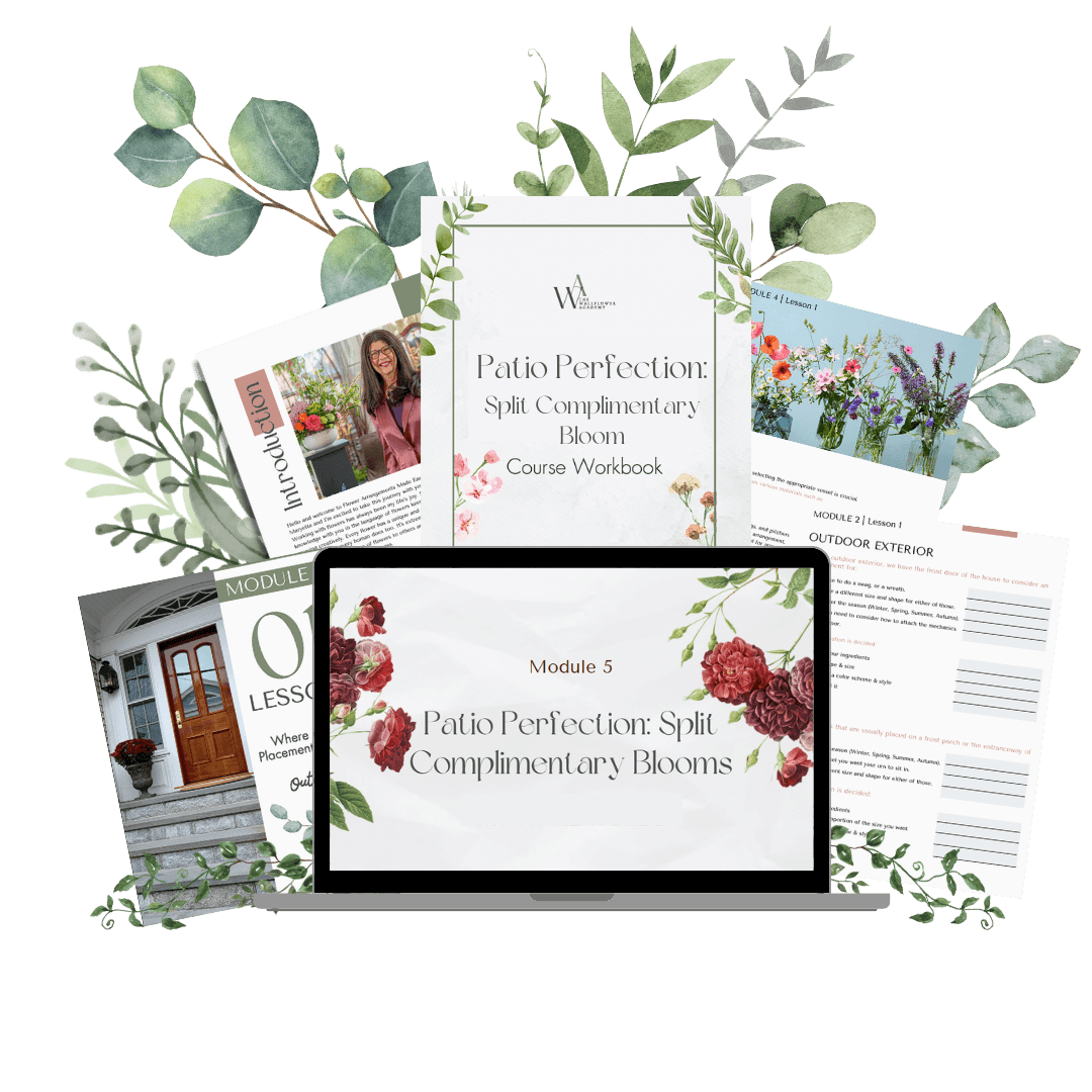 The Full Patio Perfection Course 4 Guided Modules with Step-by-step video lessons to help you design stunning floral arrangements for your outdoor patio and beyond — ($197 value)